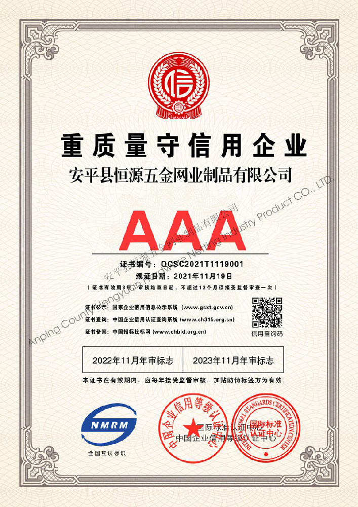 多年來,安平縣恒源五金網(wǎng)業(yè)制品有限公司堅持“科技興企、質(zhì)量立業(yè)”的經(jīng)營理念和“誠心為本、客戶至上”的合作宗旨,優(yōu)化生產(chǎn)工藝,打造優(yōu)質(zhì)產(chǎn)品,提供完善的服務,受到國內(nèi)外客戶的一致好評,產(chǎn)品行銷全國各地,并出口美國、德國、韓國、日本、臺灣等國家和地區(qū)。
